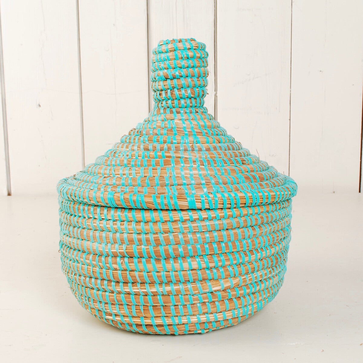 Handgevlochten decoratief opbergmandje in tajine model, van riet, met los deksel.