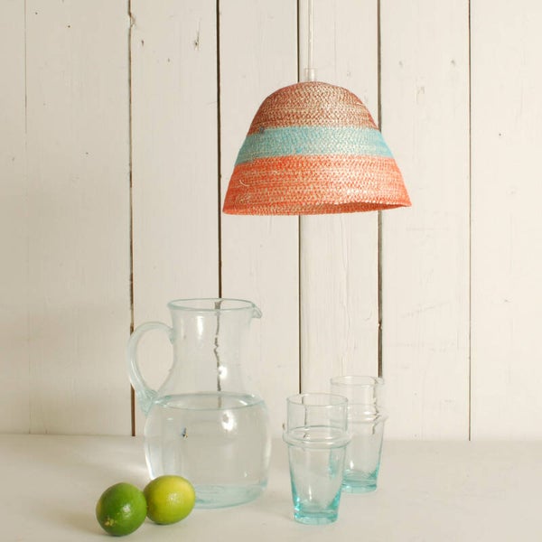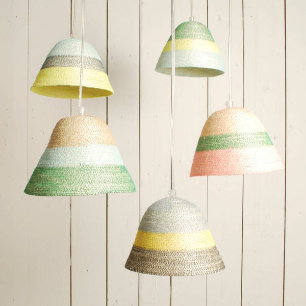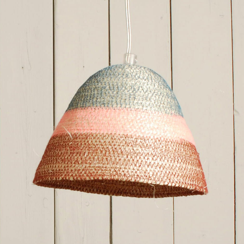 Decoratief klein hanglampje van naturel sisal en gekleurd garen.