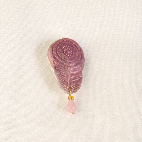 Unieke handgemaakte broche van porselein met in reliëf een bloem.