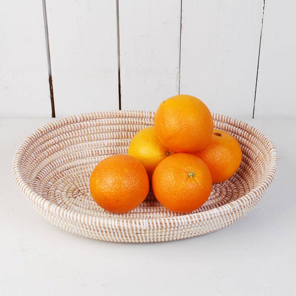 Handgevlochten mand. Gebruik hem als fruitschaal, postbak, broodmand, voor al je rondslingerende snoeren en opladers, etc.